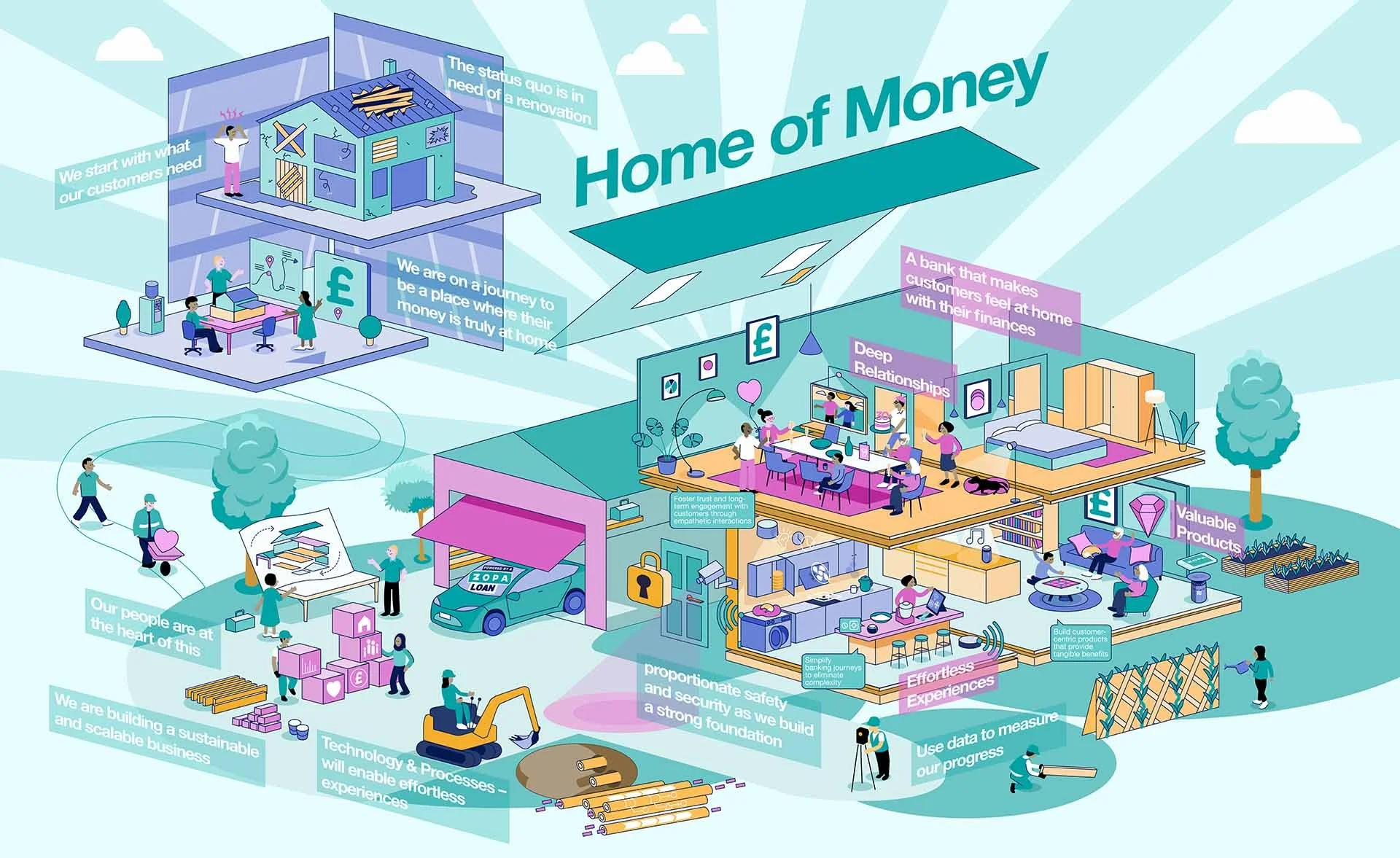 We synthesised the outputs into a single, coherent visual narrative that captured the organisation’s shared ambition. Because it emerged from within the business, the final visual did more than explain the strategy. It grounded the vision in personal meaning and gave the workforce a clear, collective foundation for change.